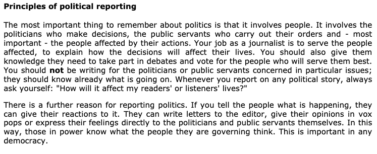 For the pros, I really liked how they stressed the fact that reporters need to be responsible in what they are reporting on. Politics are a sensitive issue and a lot of lives are involved, meaning the repercussions are very serious for all parties involved, especially with classified information. You never know what the ripple effect will be and how people will be affected. For the cons, I wish the article would have touched more on how to protect these individuals in classified material. Reporters should have bases to follow and areas to protect these individuals, or the news shouldn’t be posted at all. These measures need to be taken in order to protect all parties involved, from the politician to the reporter to the constituents, they all need to be protected and cared for.